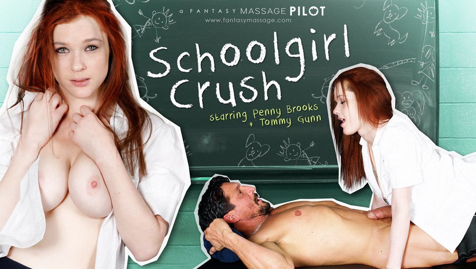 Tommy prepares himself by undressing and lying on the massage table. Penny rubs his back and legs while Tommy gives her pointers on how to improve her technique. Turning around on his back, Penny notices his huge hard on over the towel and takes this as a sign that she is doing a great job. Even though Tommy is embarrassed about his huge erection, he encourages Penny to proceed with the training but she is fixated on his penis and wants to see more of it. How will Tommy react to her advances? Will he call it quits or will this school girl report on Tommy's dick? Watch and find out!